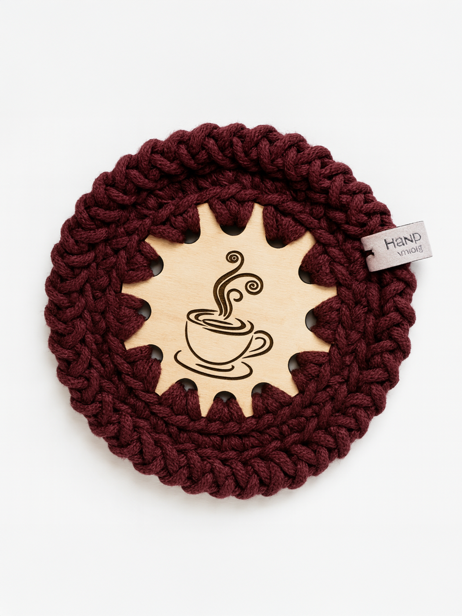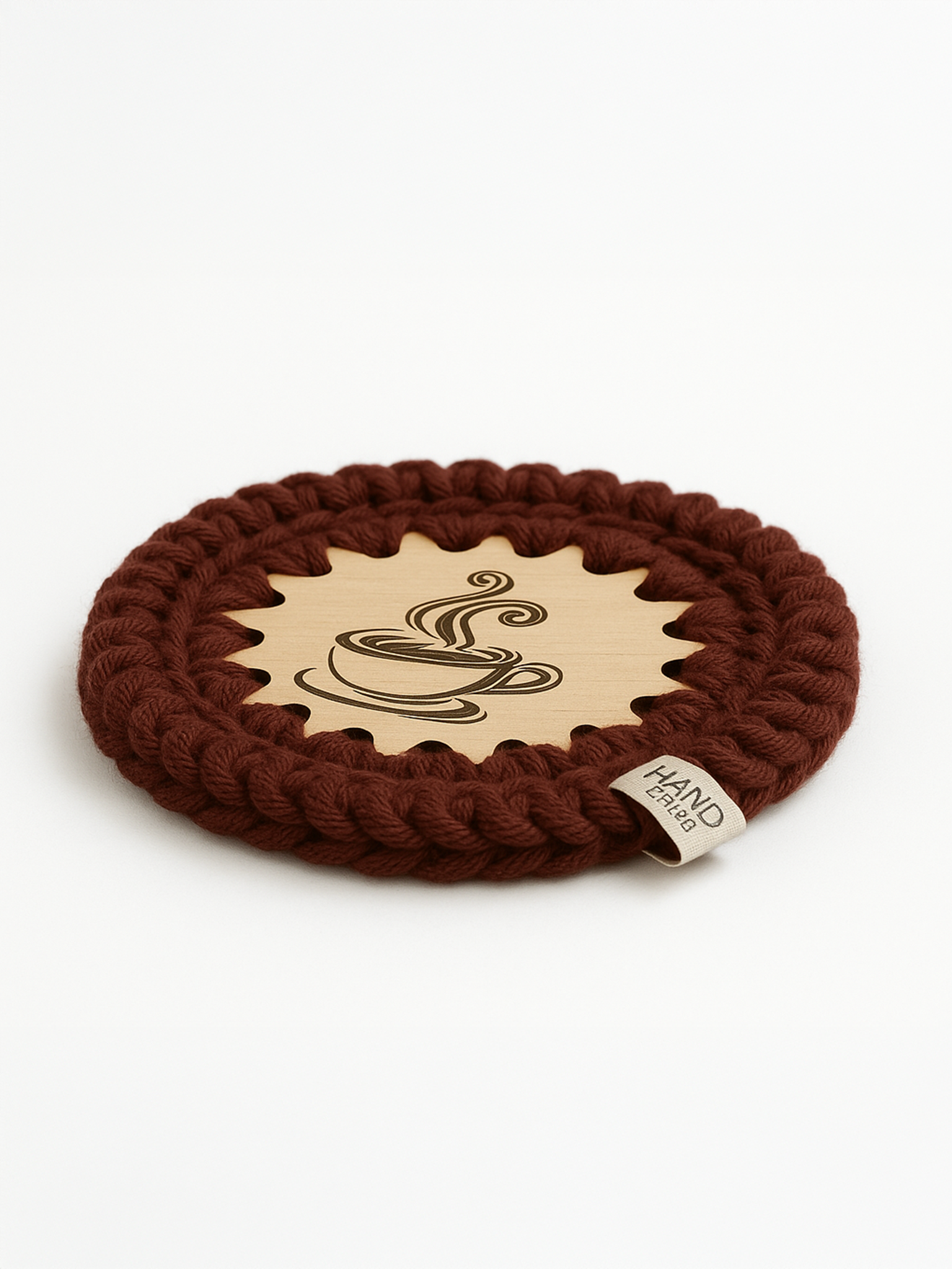 Ta podstawka to coś więcej niż zwykły element wyposażenia – jej ręczne wykonanie nadaje każdemu egzemplarzowi niepowtarzalny charakter. Drewniany środek z laserowym grawerem filiżanki oraz miękkie, solidne obszycie tworzą harmonijną całość, która świetnie wpisze się w klimat każdej kuchni lub jadalni.